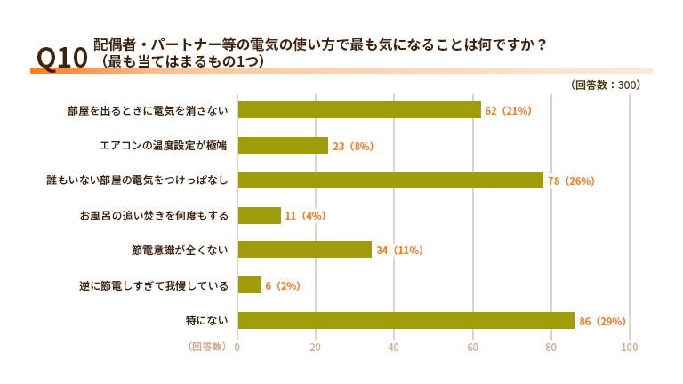 Q10.配偶者・パートナー等の電気の使い方で最も気になることは何ですか?(最も当てはまるもの1つ)