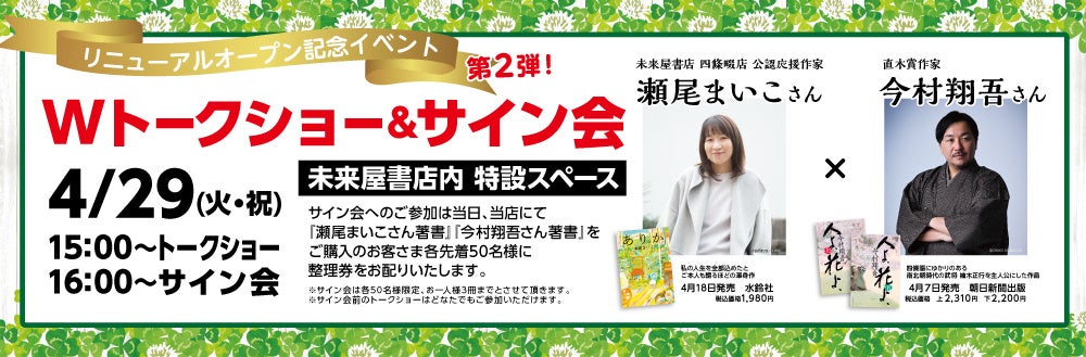 「瀬尾まいこさん×今村翔吾さん Wトークショー&サイン会」