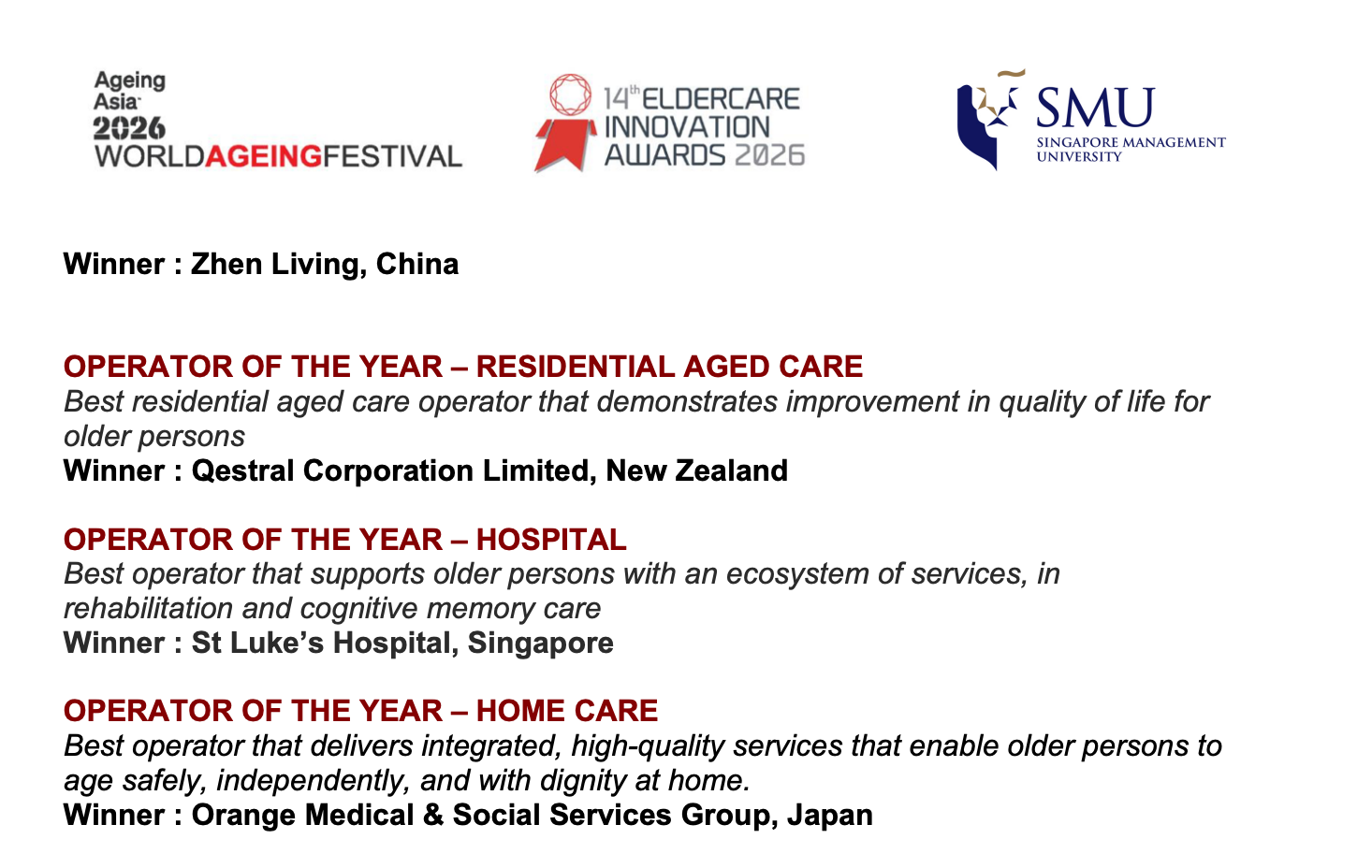 オレンジホームケアクリニック、第14回アジア太平洋高齢者ケアイノベーションアワード2026 OPERATOR OF THE YEAR – HOME CARE部門においてグランプリ受賞