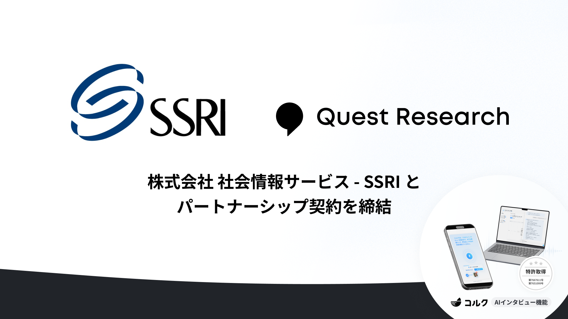 【医療リサーチを革新】Quest Research、社会情報サービス(SSRI)とパートナーシップ契約を締結。「コルク」のAIインタビューで“定性と定量の間”を埋める新たな調査手法を提供開始 。
