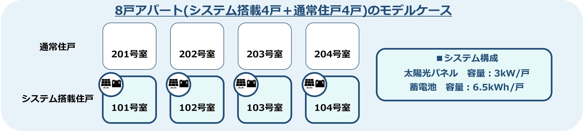 において、太陽光パネルと蓄電池を各戸に搭載し、再生可能エネルギーの自家消費と売電収入の全額を個々の入居者に