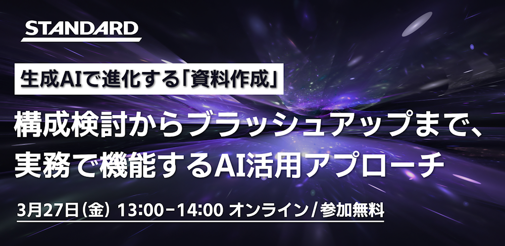 【ライブ解説】生成AIで「資料作成」はどう変わるか?構成からブラッシュアップまで、1,500社の支援実績を持つSTANDARDが徹底解説(3/27開催)
