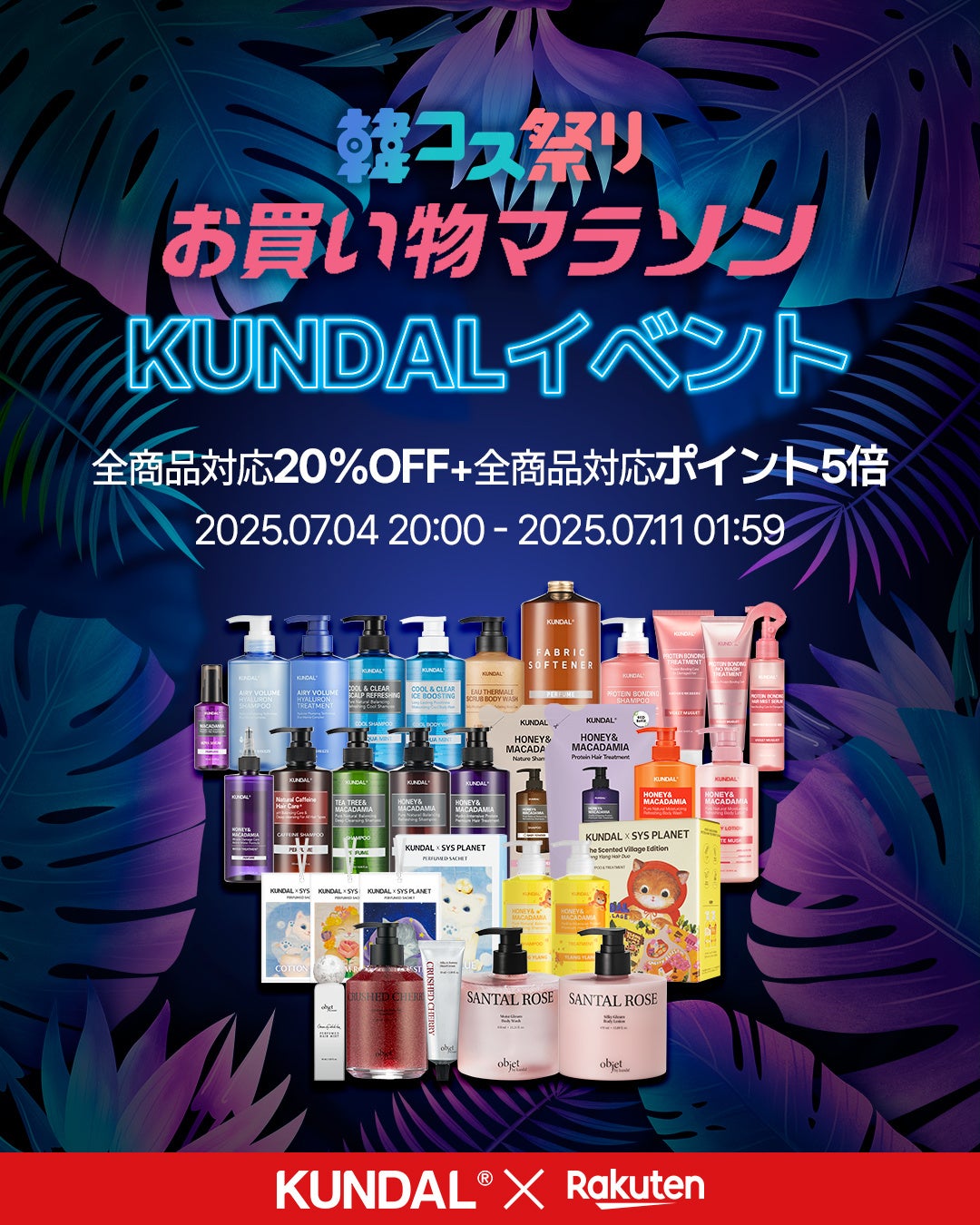 韓国NO.1(*1)ヘアケアブランド「KUNDAL(クンダル)」は、2025年7月4日(金)7月11日(金)まで、インターネット総合ショッピングモール「楽天市場」で開催される「韓コス祭り」と「お買い物マラソン」に参加いたします。