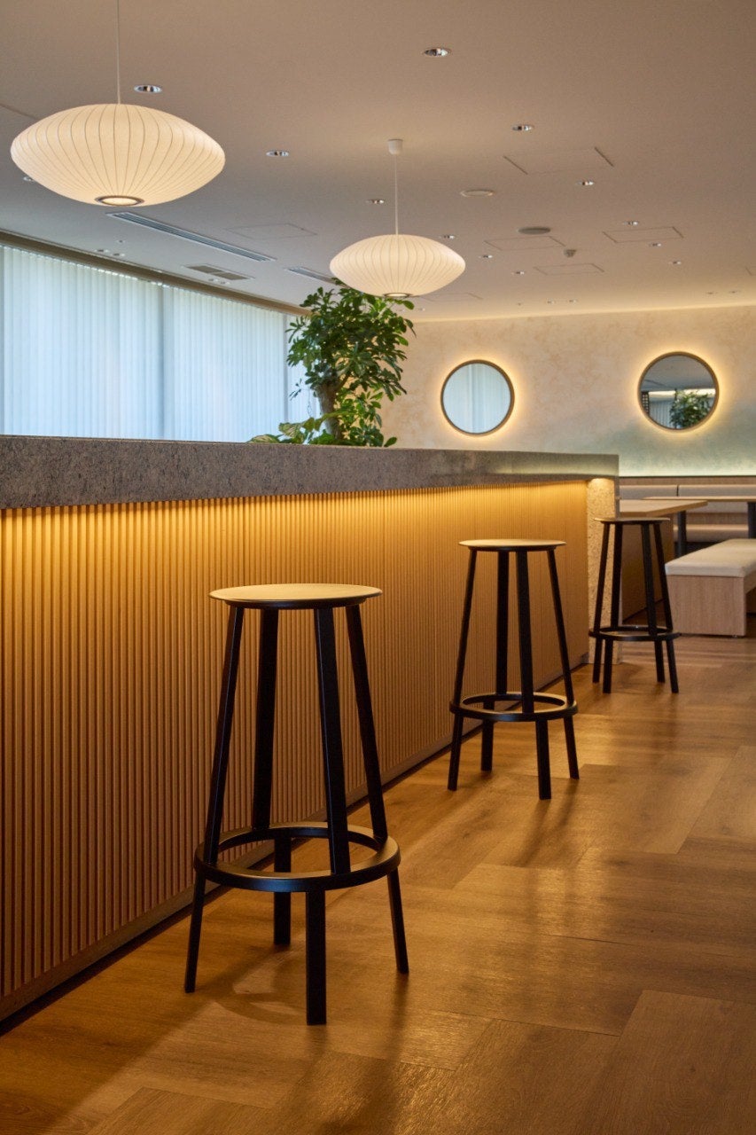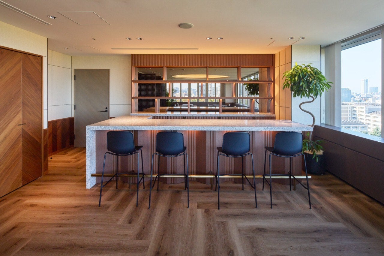 青山一丁目駅直結。窓いっぱいの緑に包まれる180㎡ラウンジ