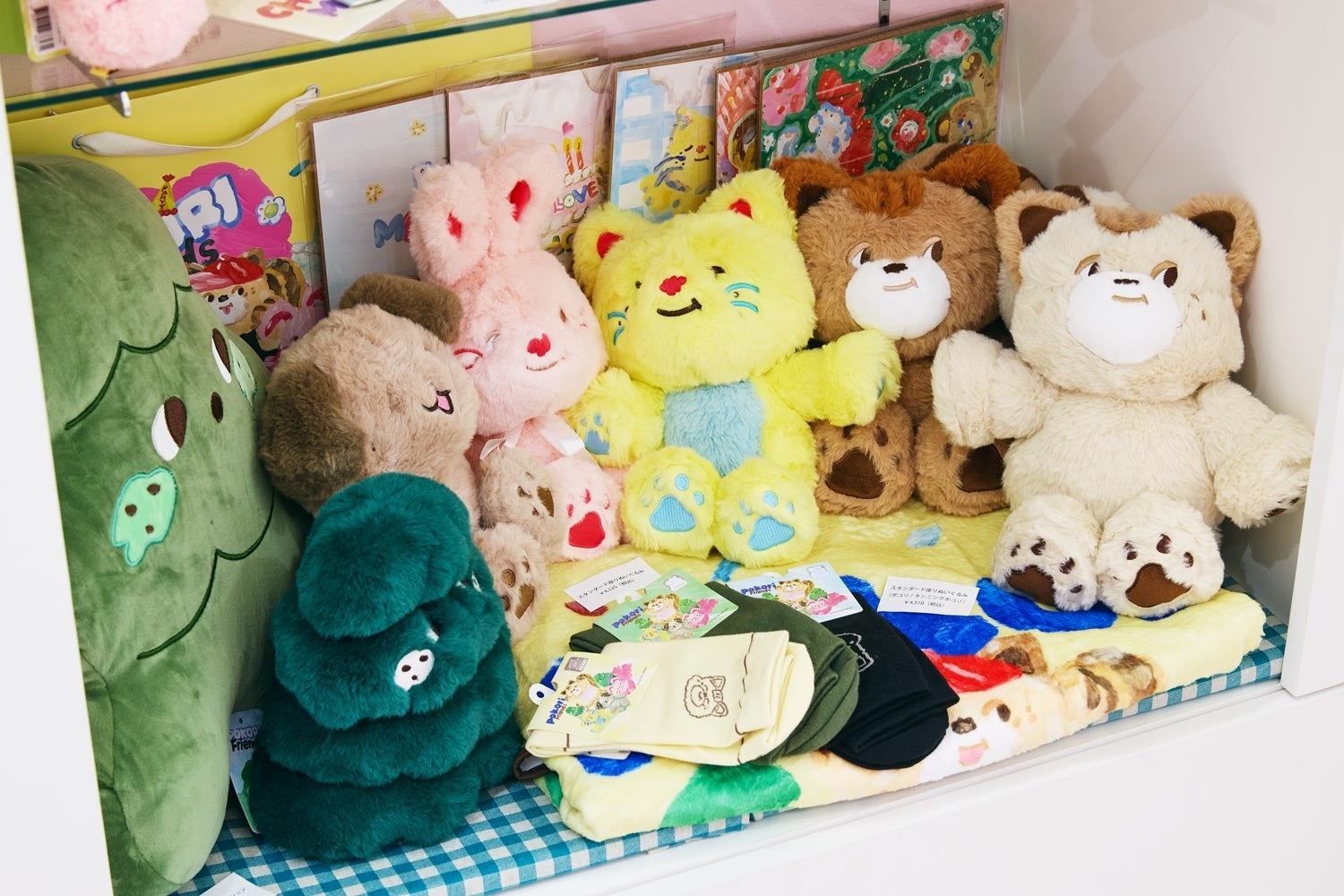 店内では、人気キャラクターの雑貨やアパレルなどを販売。韓国の人気キャラクターや注目の新キャラクターなど、キャラクターごとにディスプレイされています。