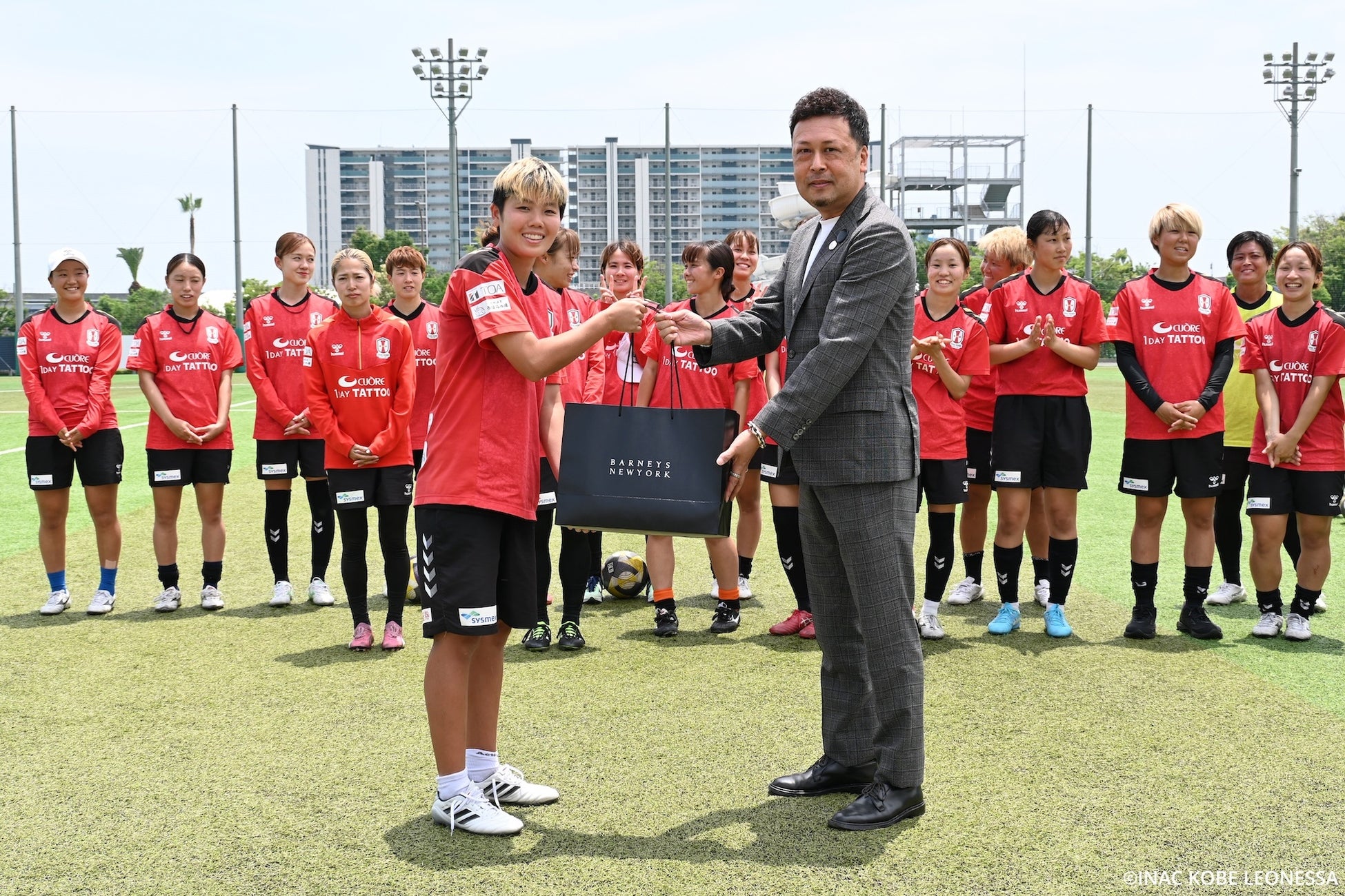 このたび、日本女子プロサッカーリーグ(WEリーグ)に所属するサッカークラブチーム、INAC神戸レオネッサは、株式会社バーニーズジャパン様とオフィシャルサプライヤー契約を締結し、6月27日(金)に贈呈式を行いました。