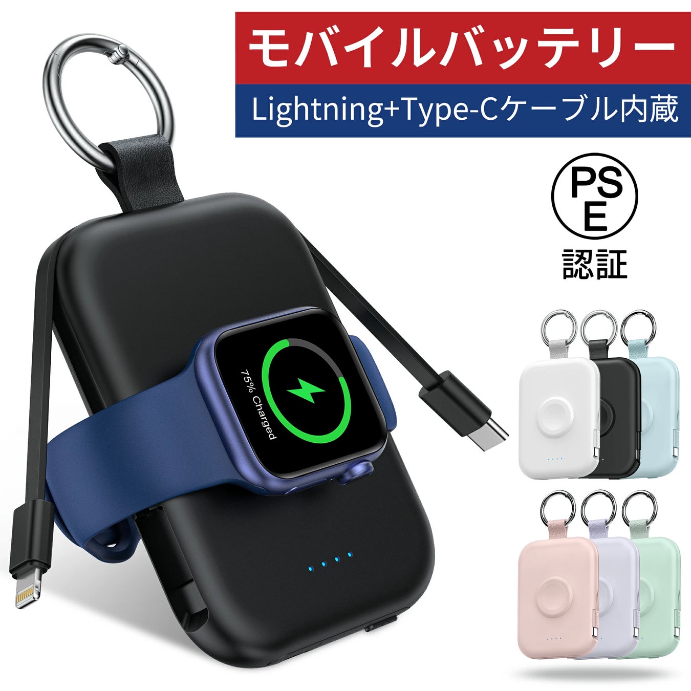 超ミニ 急速充電 2500mAh USB-Cケーブル内蔵 アップルウォッチ モバイル充電器(D2-2500)