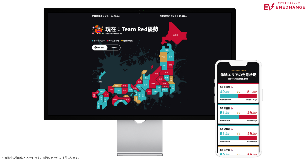 実際の充電データをもとにチームスコアを算出し、各チームの都道府県ごとの勝敗が毎日更新される仕組みで、いつもの充電を“ゲームのように”楽しむことができます。
