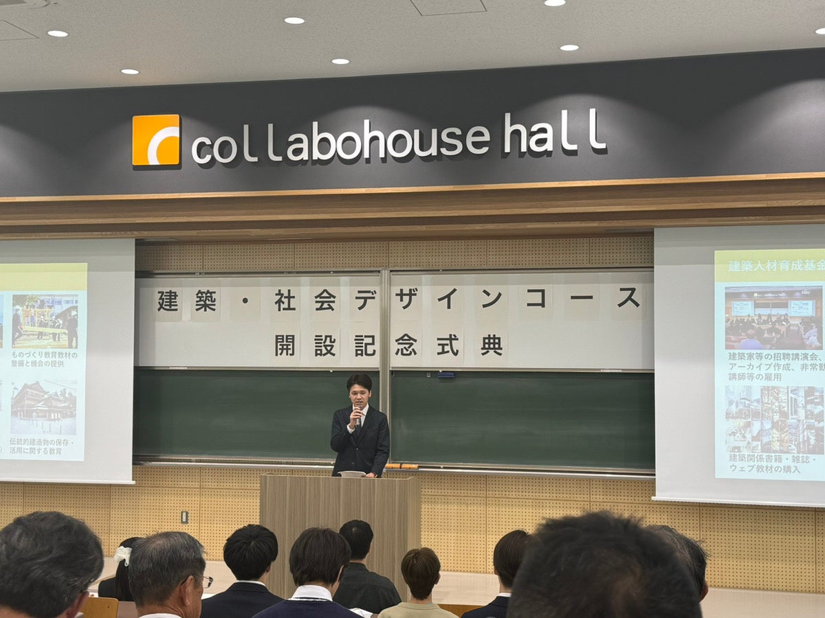 本コースは、建築設計にとどまらず、地域社会やまちづくりまでを包括的に捉える人材育成を目的としており、人口減少や地域課題が顕在化する中で、実践的な知見を持つ人材の輩出が期待されています。今回の開設記念式典は、こうした取り組みの第一歩として、産学連携しながら地域に根ざした建築・まちづくりを推進していく姿勢を示す機会となりました。
