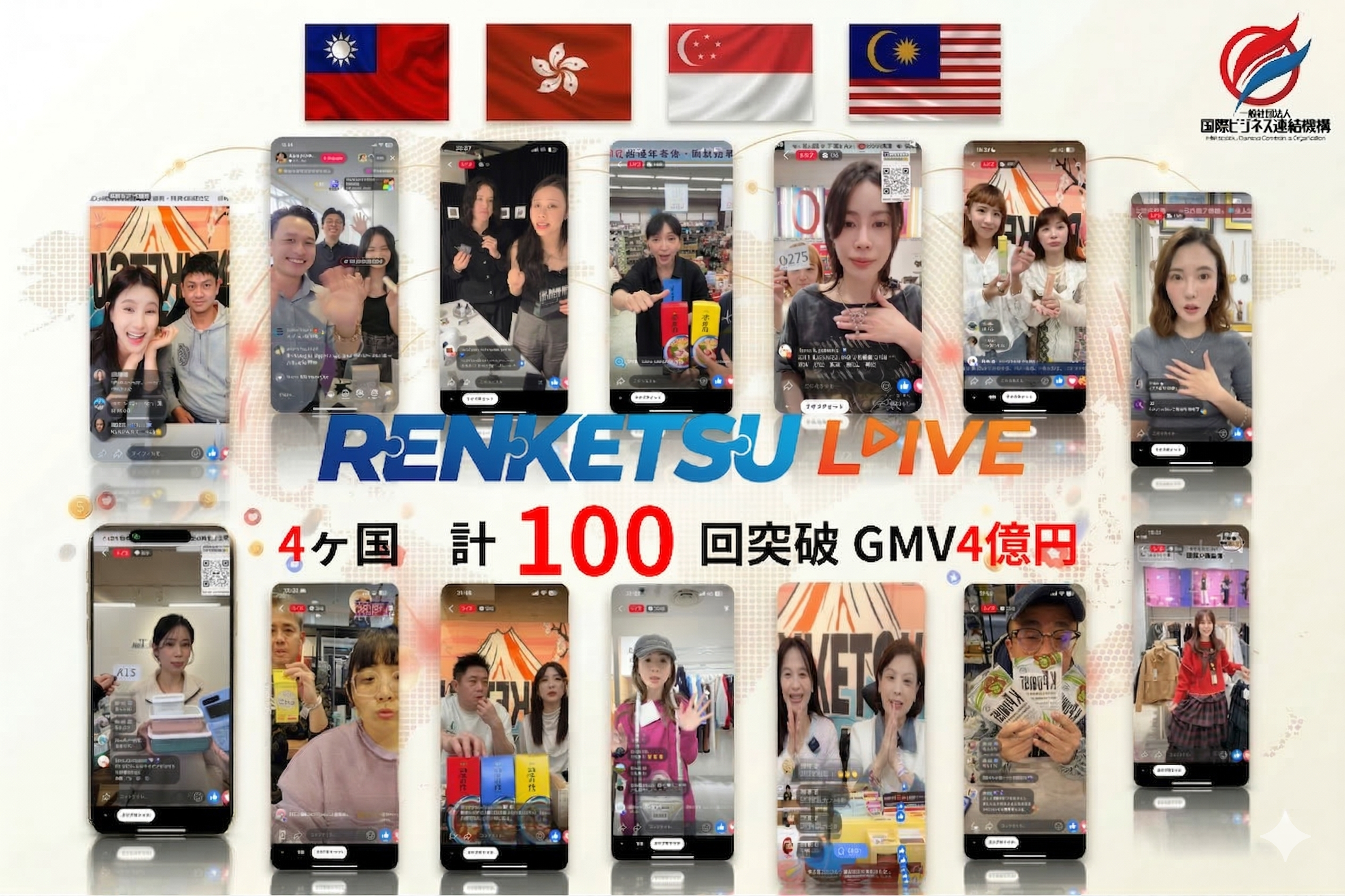 日本企業の海外進出を「知識・人脈・きっかけ」の3つの軸で支援する一般社団法人国際ビジネス連結機構(所在地:東京都港区、代表理事:松浦啓介)は、会員企業向けに実施しているライブコマース体験イベントの累計開催回数が100回を突破したことをお知らせいたします。