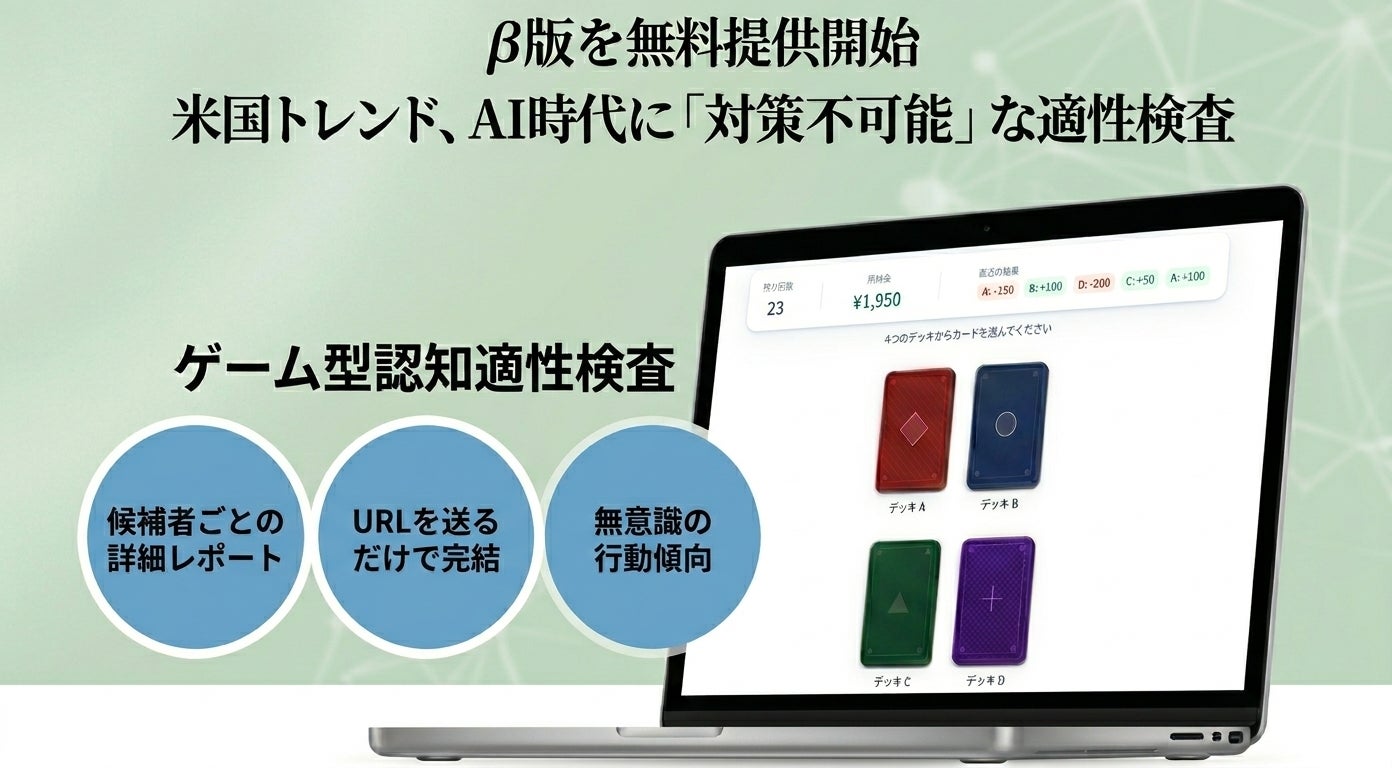 米国トレンド、AI時代に「対策不可能」な適性検査~ゲーム型認知適性検査のβ版を無料提供開始