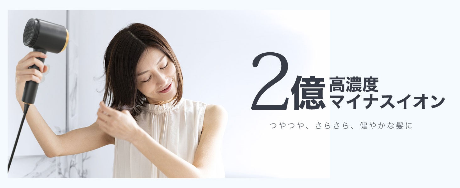 本製品は、従来のドライヤーを凌駕する2億もの高濃度マイナスイオンを放出します。