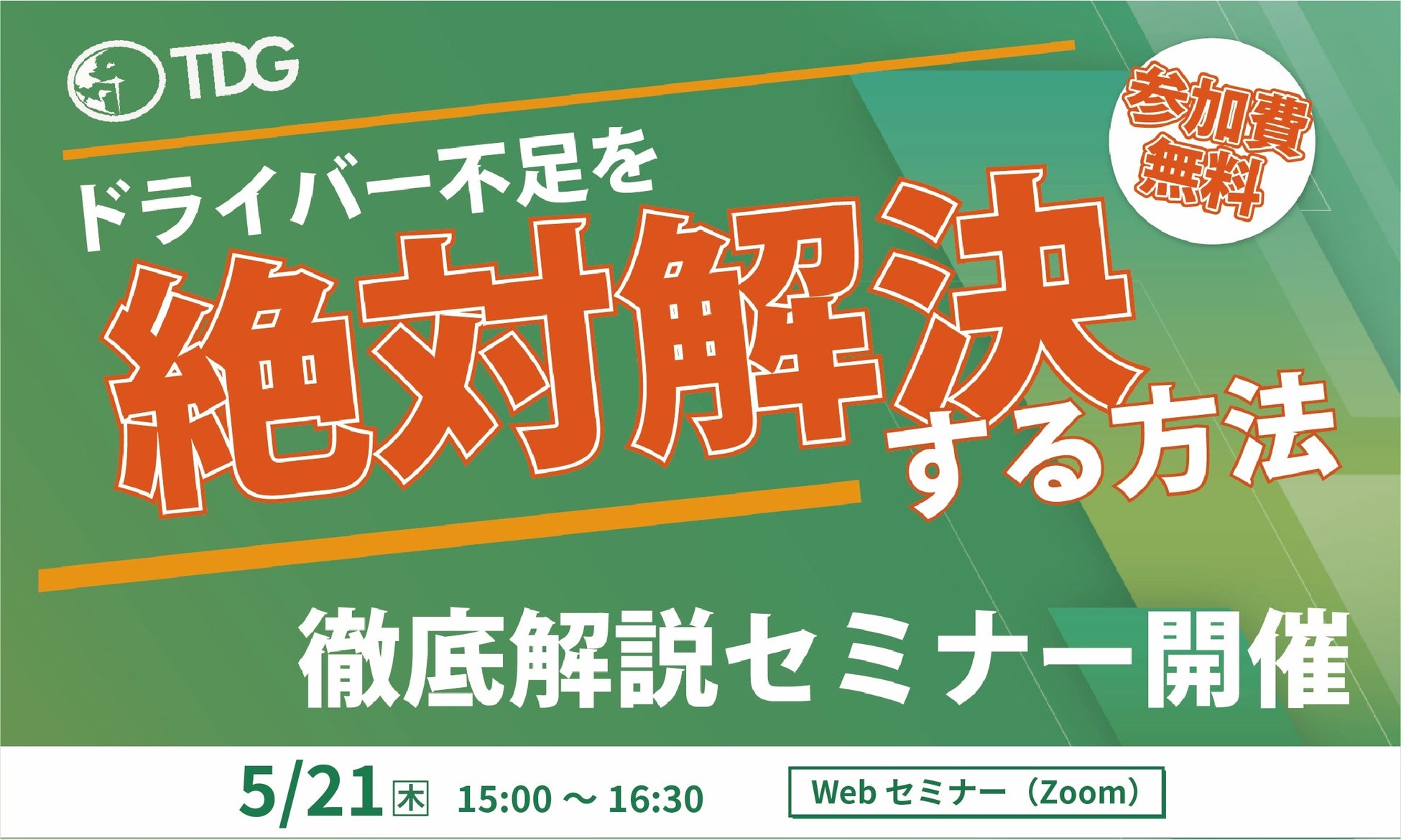 株式会社TDGホールディングス(本社:三重県伊勢市、グループCEO:加藤 光一、以下「TDG」)は、日本ロジソリューションズ株式会社(本社:東京都中央区、代表取締役社長:岩田 享也、以下「日本ロジソリューションズ」)と共同で、第16回目となる物流業界向けウェビナー「外国人特定技能トラックドライバー人材のリアルを解説」を2026年5月21日(木)に開催いたします。