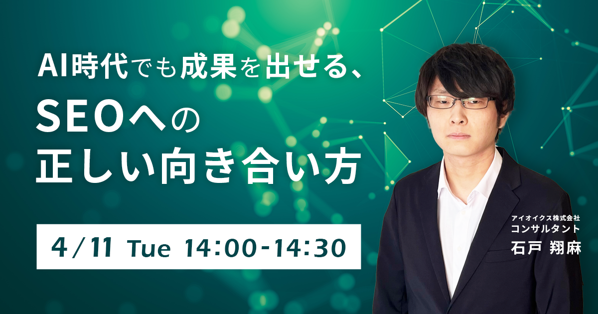 【SEO初心者必見】「AI時代でも成果を出せる、SEOへの正しい向き合い方」をプロが解説する無料ウェビナー 4月11日(火)開催