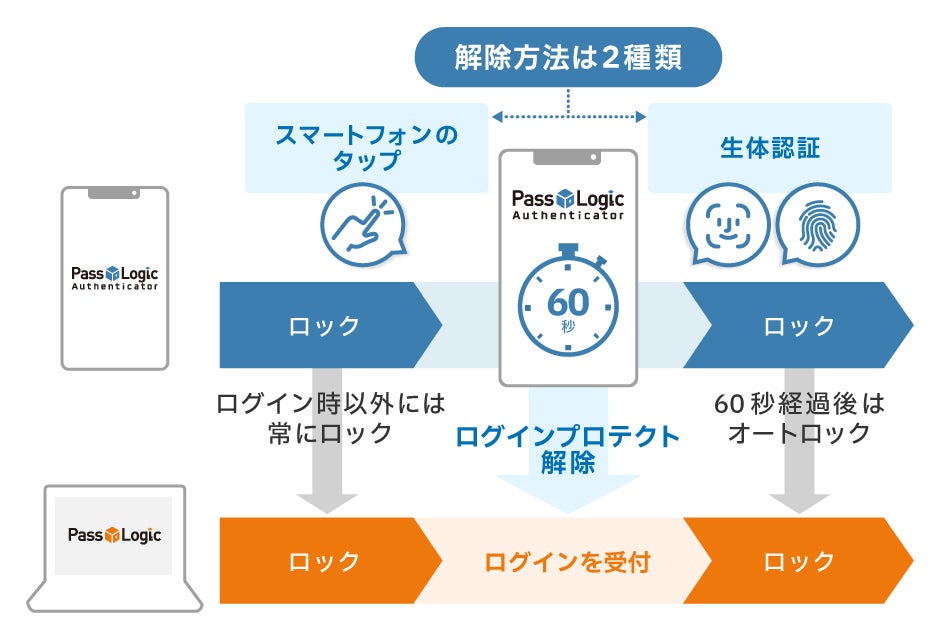 PassLogic Authenticatorのログインプロテクト機能の解除方式に、スマートフォンの生体認証機能が追加されました。