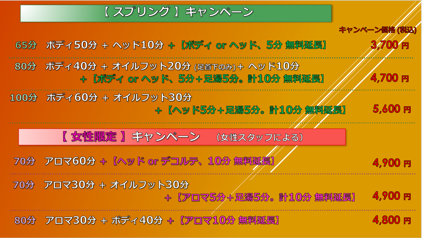 NEWスプリングキャンペーン 3/11よりお得にマッサージ