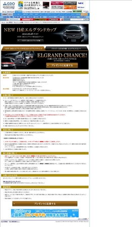 抽選で1名様に新型エルグランドをプレゼント。※特設サイトより24時間で申込み可能