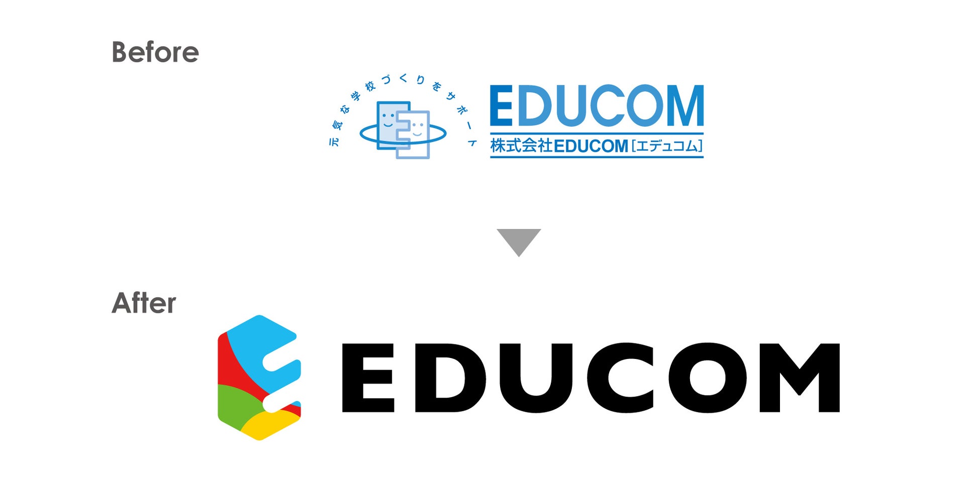 また、EDUCOMが大切にしていきたいと考える「先駆的な」「寄り添った」「いきいきした」「ワクワク感」を、青・赤・緑・黄の4つの色に込めています。