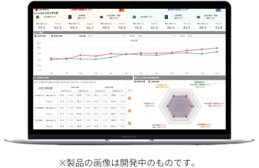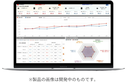 本サービスは、当社が独自で保有する世界中の法務・知財データベースと従業員情報を比較し、企業の「コンプライアンス・スコア」を自動で分析し可視化するサービスです。定量化された指標で法務リスクを可視化することで、効果的な法務施策に繋げることが可能です。