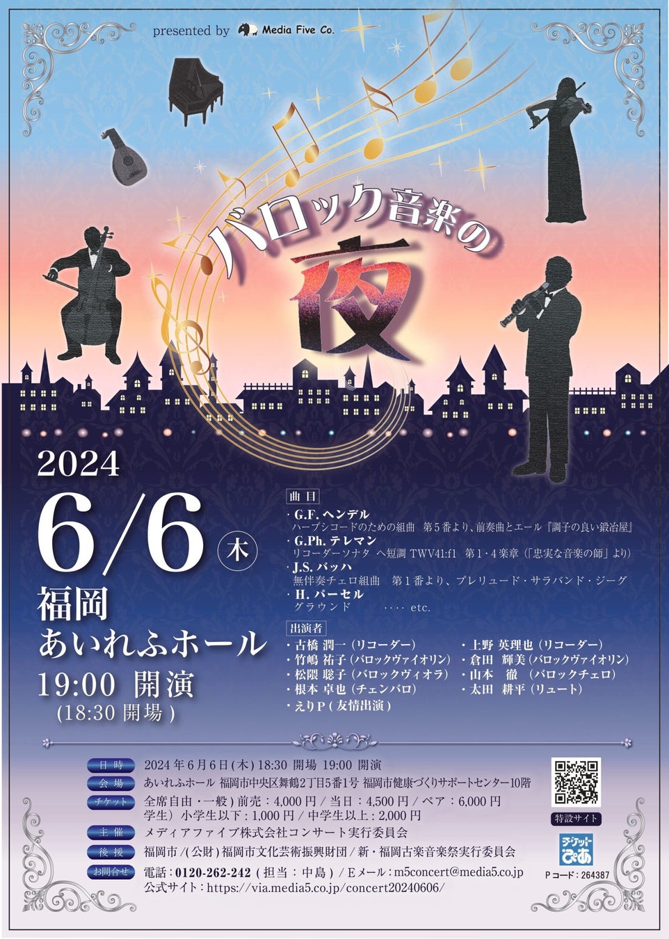 メディアファイブ株式会社は、2024年6月6日(木)にバロックコンサート「バロック音楽の夜」を主催いたします。
