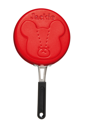 2種類のパンケーキが焼ける!パンケーキパン ジャッキーの名前と顔入りのまる型と、フェイス型パンケーキが焼ける2WAYタイプのパンケーキパンは、 直径16cmで、赤いカラーがポイント。キッチングッズメーカー、ヤクセルの製品です。 *電磁調理器(IHクッキングヒーター)ではご使用できません。 【セット内容2】