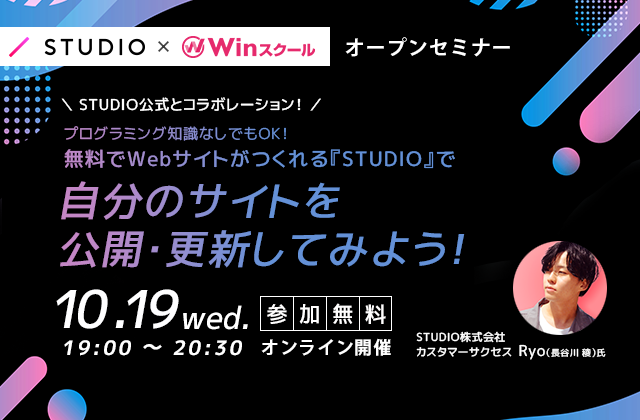 ~WinスクールとノーコードWebデザインツール『STUDIO』が10月19日に無料セミナー開催~