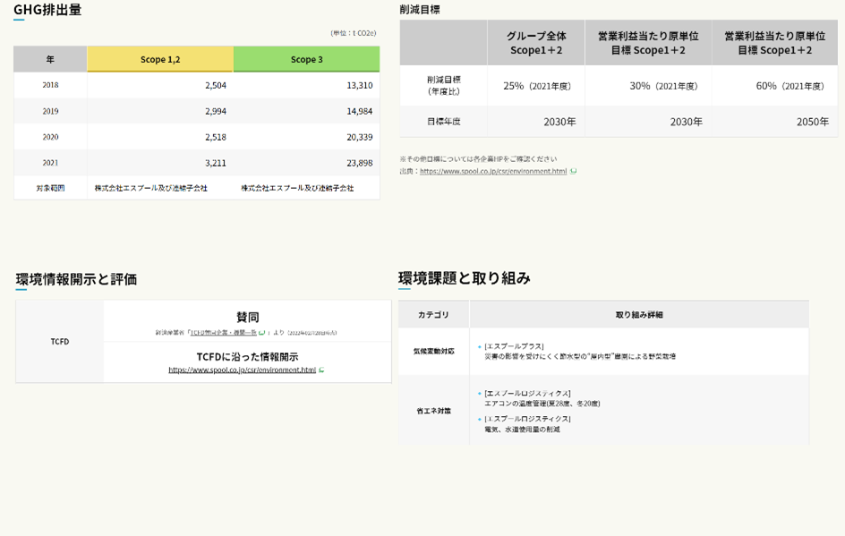 ① 主要企業の環境に関する開示情報を統一フォーマットで掲載