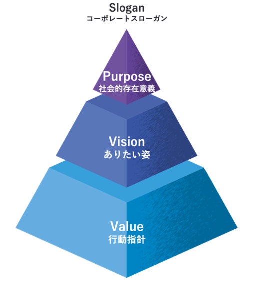 PURPOSE(社会的存在意義):「ICTの力で新たな価値を創造し、社会、顧客、そして社員が、もっと輝く未来へ」