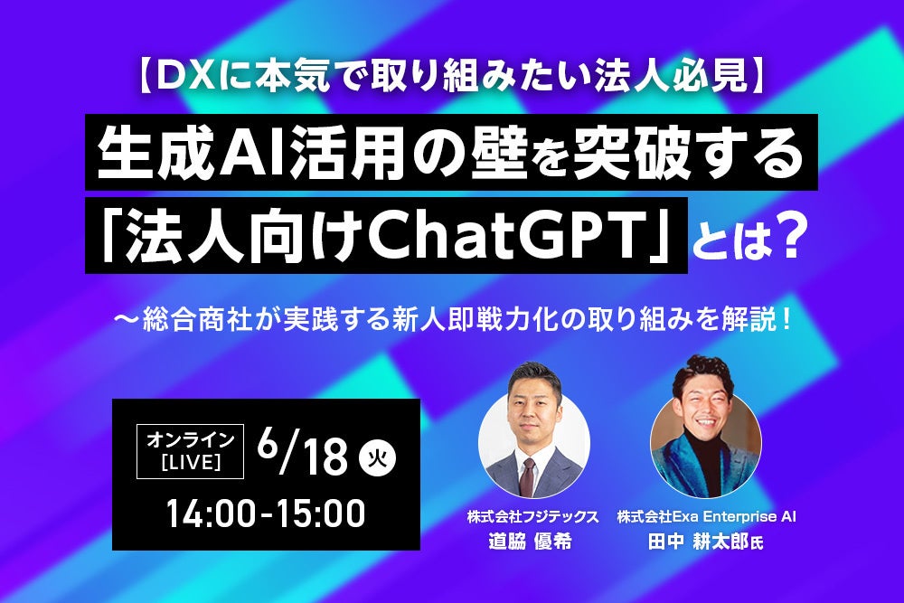 セミナー開催:【DXに本気で取り組みたい法人必見】生成AI活用の壁を突破する「法人向けChatGPT」とは?