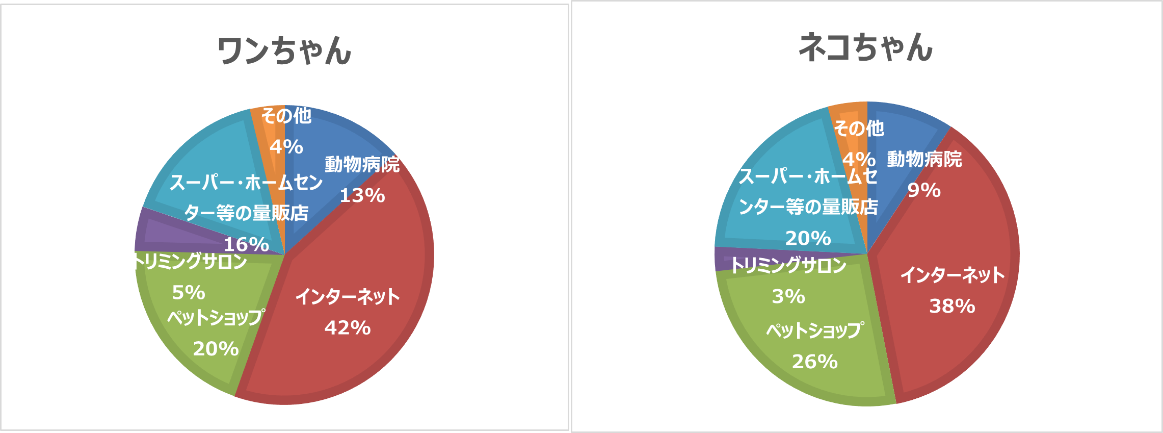 ・シャンプー購入先1位:【犬・猫共通】インターネットが4割程度で最多