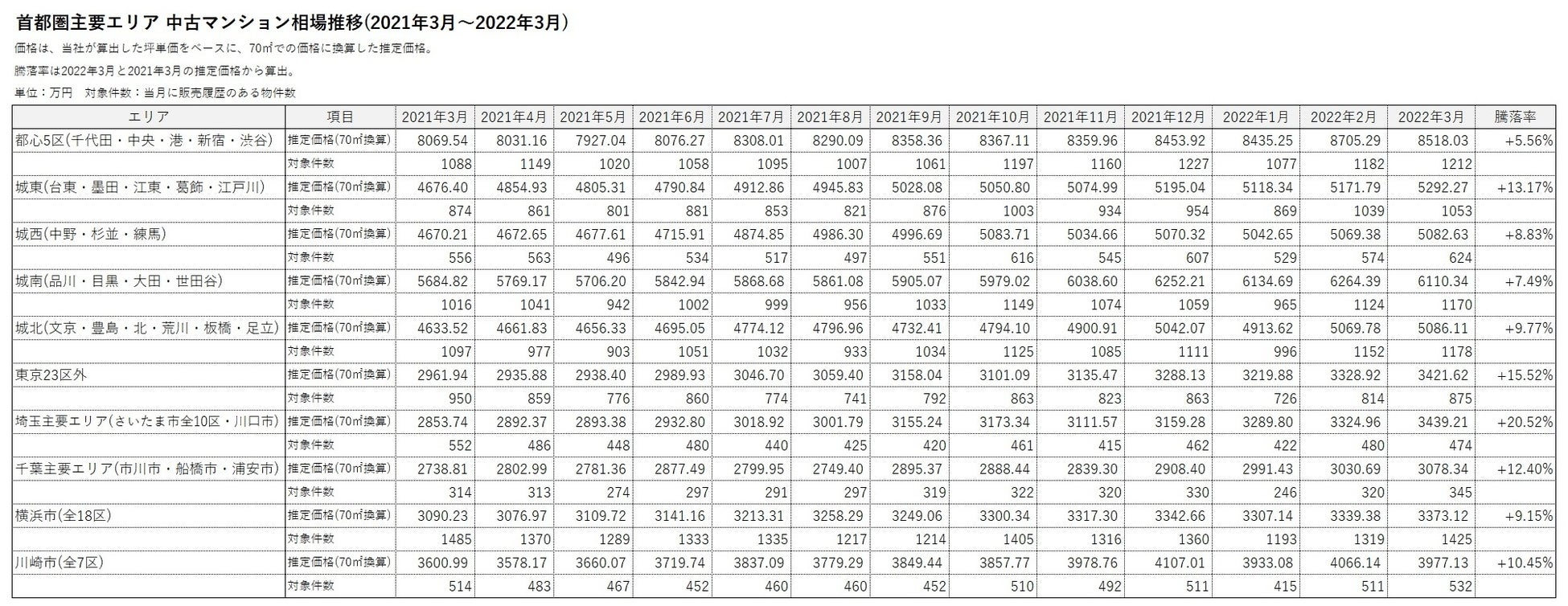 *2 今回のリリース(2022年3月度)よりエリア区分を変更。「都心6区」を「都心5区」に変更し「文京区」を「城北」エリアに入れて再計算。