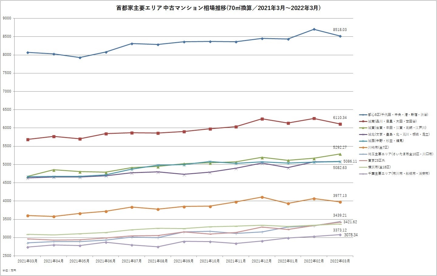 ■主要エリア 中古マンション相場推移(2021年3月~2022年3月)