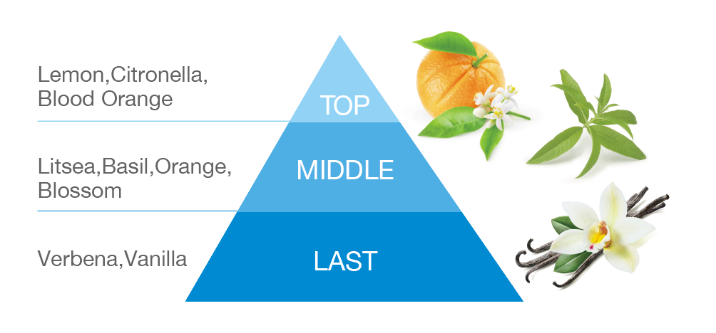 香りは天然由来のみを採用。リラックスさせてくれるネロリを中心に、清潔感あるハーブや華やかなシトラスバニラの香りを調合。男女問わず好まれる香りです。