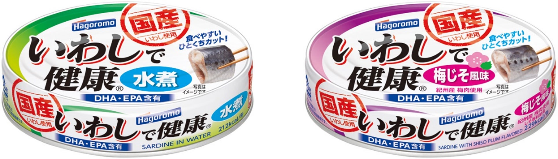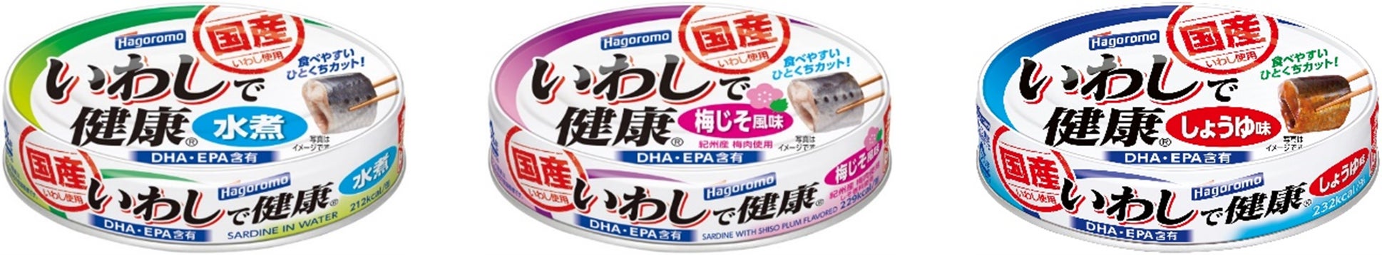 今回発売する「いわしで健康水煮」「いわしで健康梅じそ風味」は、厳選された脂のりのいい新鮮ないわしを使い、素材の味を活かしたあっさりとした味付けに仕上げました。水煮は、調味液に野菜だしを使用し、シンプルながら調理素材としてだけではなく、そのまま食べてもおいしくお召し上がりいただけます。梅じそ風味は、紀州産の梅肉を使用し、酸味・塩味が引き立つさっぱりした味付けで、おかずとしてご飯にも合うように仕上げました。