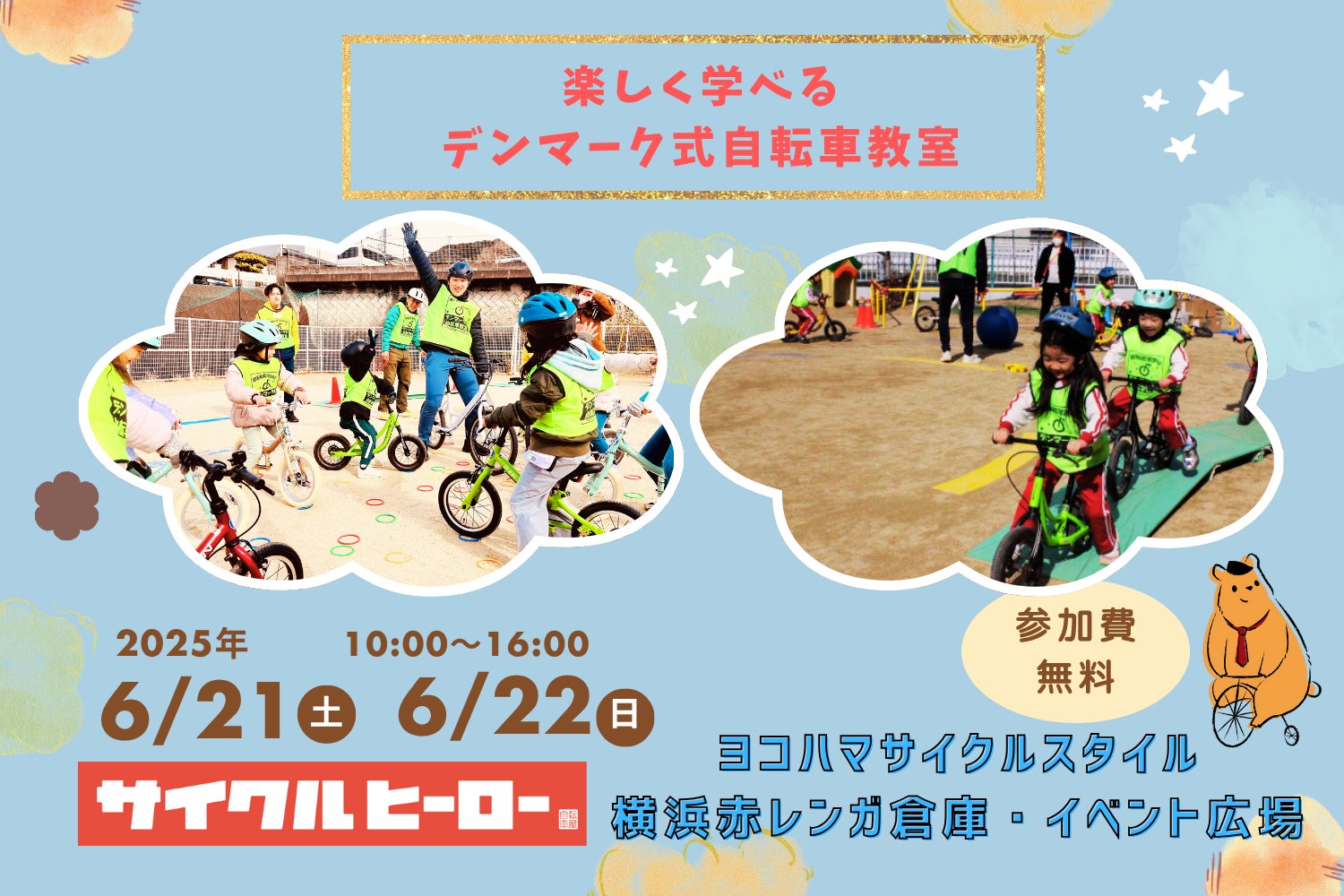 補助輪なしの自転車デビューを応援!自転車も無料貸出。