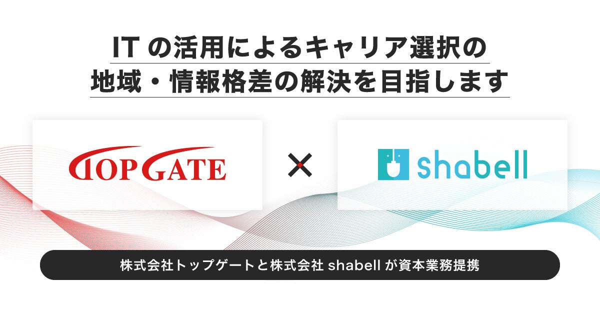 株式会社トップゲート(本社:東京都文京区、代表取締役:西海 孝、以下「トップゲート社」)は人とキャリアの適材適所を実現し、持続可能な社会づくりを目指す株式会社shabell(本社:東京都渋谷区、代表取締役:守岡 一平、以下「当社」)との資本業務提携(以下、「本提携」)を行いましたのでお知らせいたします。
