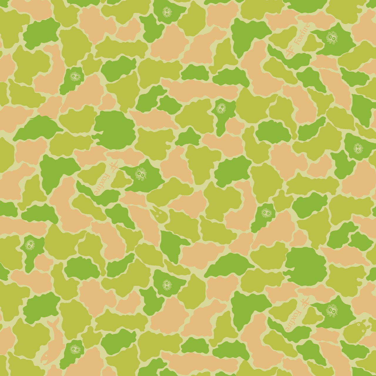 Foxfireオリジナルの「フィッシュアイ・カモフラージュ」柄をベースに、トトロやまっくろくろすけ達がところどころに配置された、コラボレーション仕様の特別な「フィッシュアイ・トトロカモ」柄を採用。ベースとなったFoxfireのオリジナルカモフラージュは、40年以上前のブランド創業時に「魚の目線」を意識し、水中から見た時に魚にみつかりにくいカモフラージュを目指してデザインされたもので、ブランドのアイコン的な柄として引き継がれてきています。