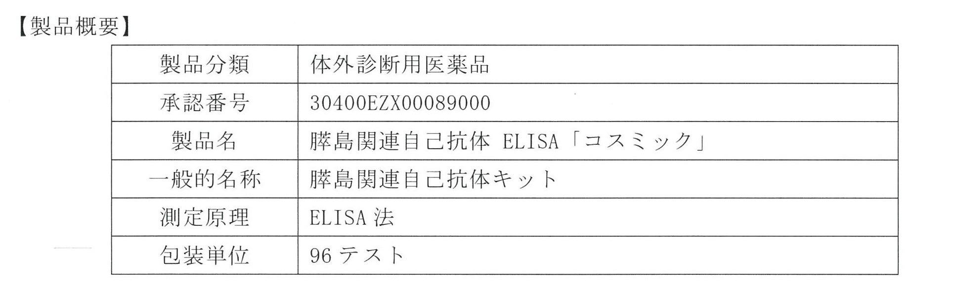 ~膵島関連自己抗体 ELISA「コスミック」急性発症1型糖尿病の診断補助として承認取得に関するお知らせ~