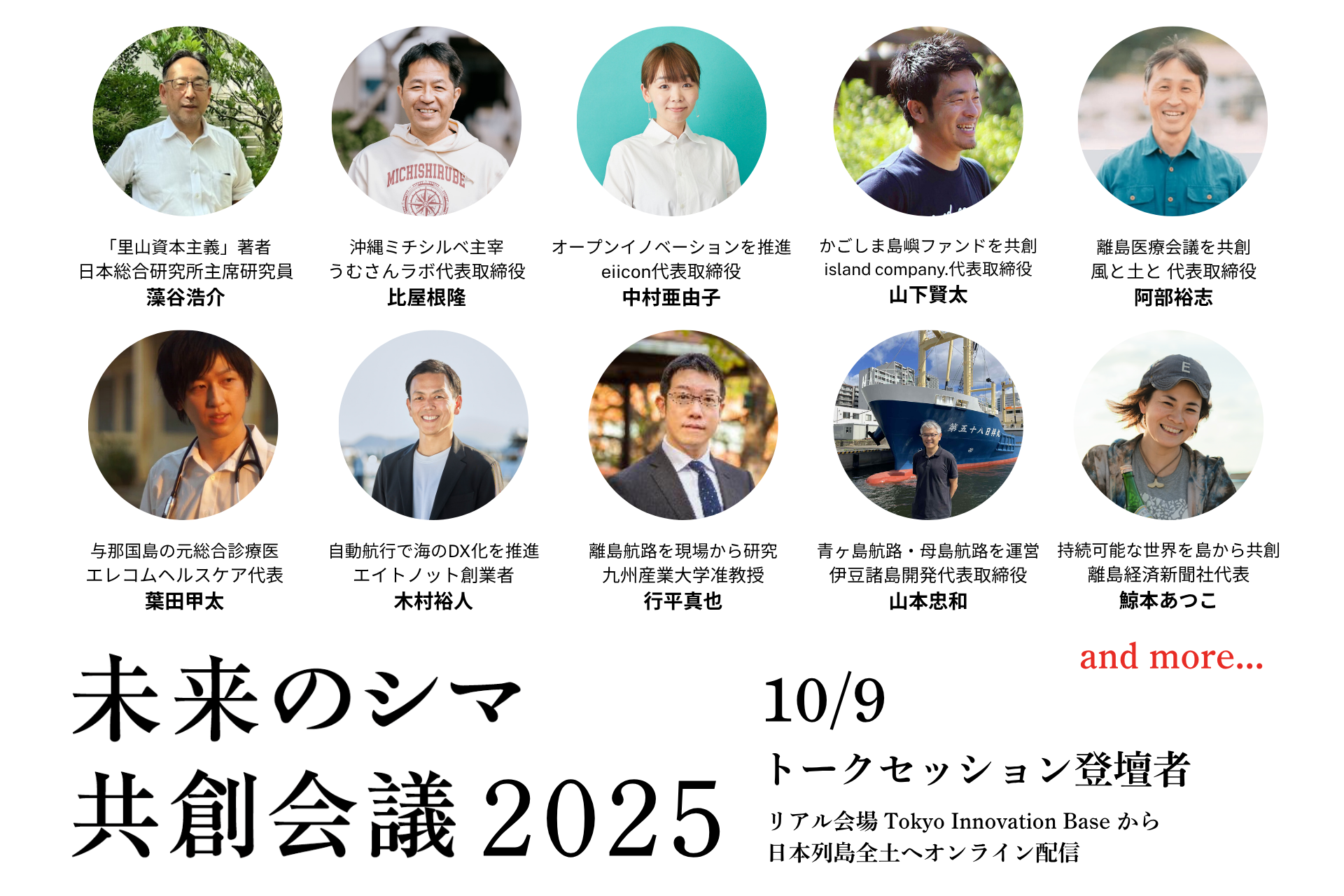 そこで、認定NPO法人離島経済新聞社(本部:大分県日田市、代表:多和田温子※活動名 鯨本あつこ)は、10月9日にTokyo Innovation Base(東京都千代田区丸の内)およびオンライン配信にて「未来のシマ共創会議2025」を開催(参加無料/要登録)。