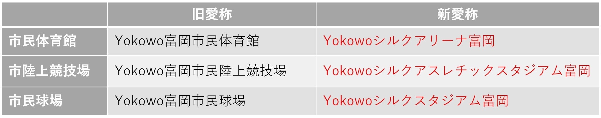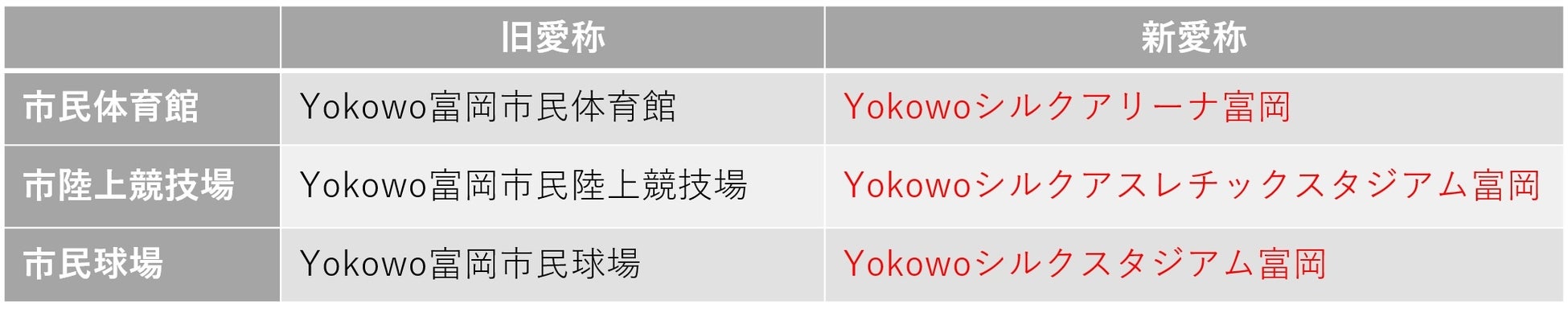 ヨコオが、ネーミングライツ契約を締結している、富岡市保有のスポーツ3施設の愛称を変更