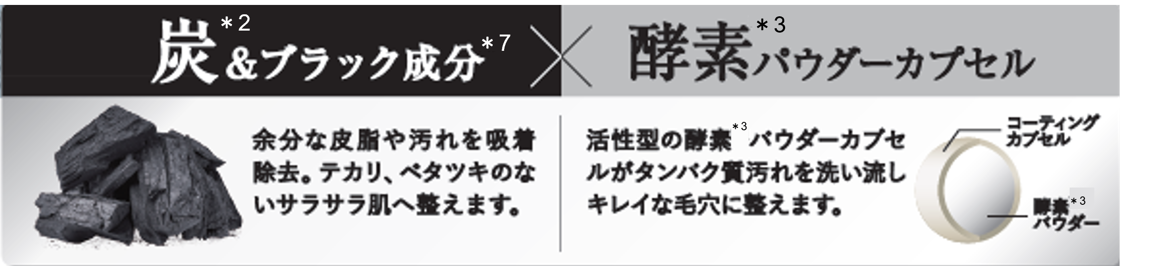 「ビタミンC誘導体*¹」と「炭*²+酵素パウダーカプセル*³ 」配合の酵素洗顔フォームブラックが新登場!