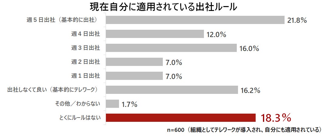 現在適用されている出社ルールについて、約2割(18.3%)の人が出社に関するルールはないことが分かりました。