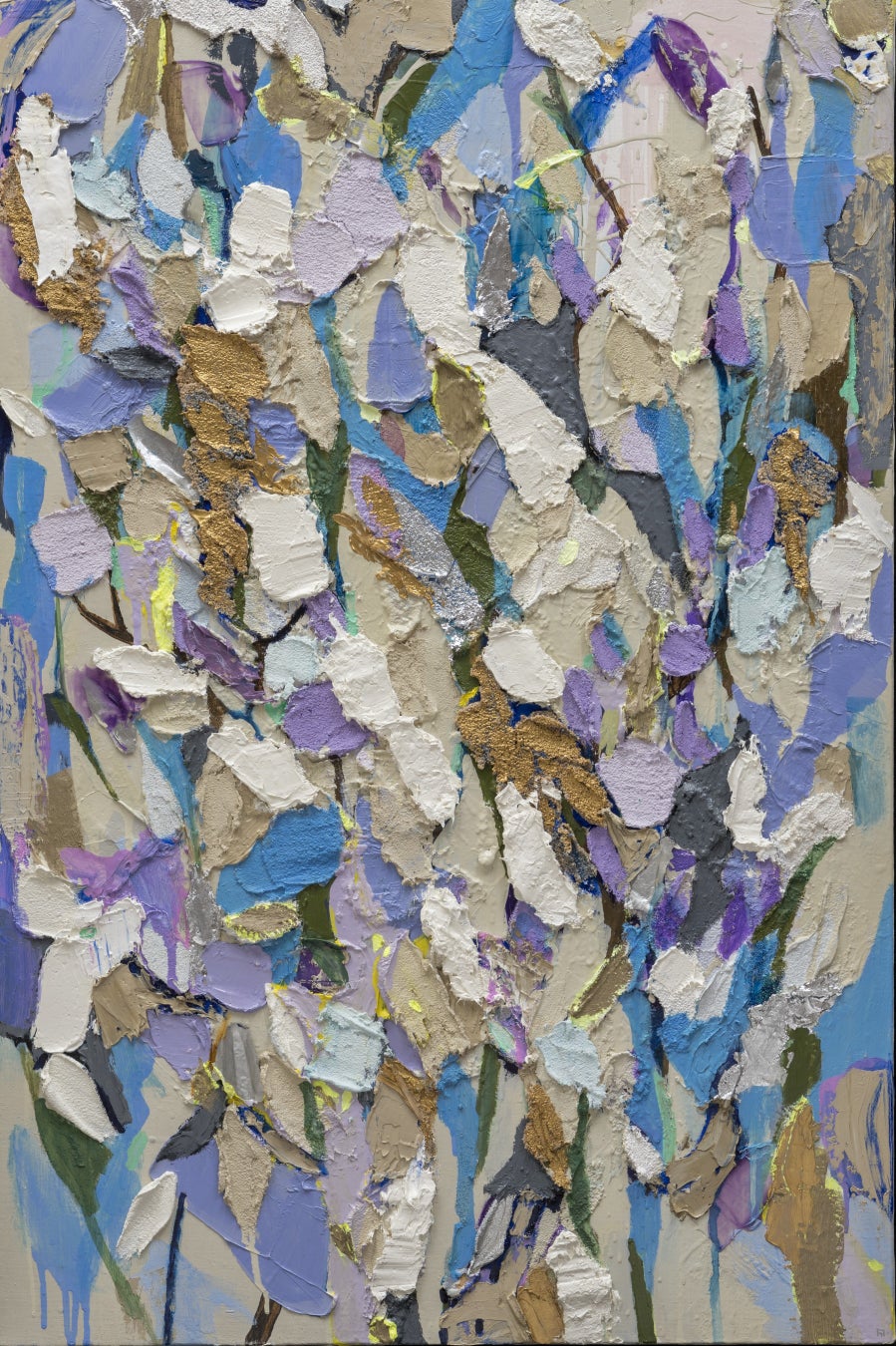 神戸とカリフォルニアを拠点に精力的に創作活動を続けているアーティスト中北紘子は、日本の伝統美を踏まえつつ、絵の具、砂や紙、真珠やクリスタルなど多彩な画材を用いながら、時に鼻歌を歌うように軽やかに、時にあふれ出る感情を祈るようにキャンバスに運び作品を描いています。今回のプロモーションに起用された作品は、満開に咲く桜の花びらが優しく風に舞う「桜舞/Aube(オーブ)」、清らかな初夏の陽射しの下芳しく咲き誇る「Magnolia(マグノリア)」、温かで気品ある母を思わせる「水色の空」、鮮やかな緑の奥へ奥へと誘う「Ophelia (オフィーリア)」他全6点。中北紘子の作品が、そごう・西武の春から初夏にかけてのプロモーションを豊かに彩ります。