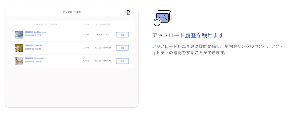 日々フォトグラファーがお客様へ写真データを送るための"ファイル送信サービス"で他のサービスにはない機能を提供することで、より多くのフォトグラファーとの接点を強化することを目指します。