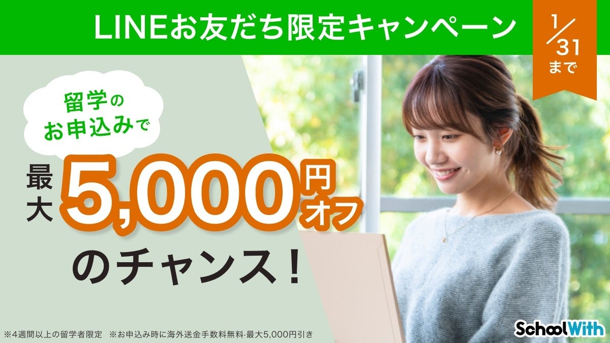 留学最大5,000円オフ!スクールウィズ公式LINEのお友達限定キャンペーンを実施中【1/31まで】