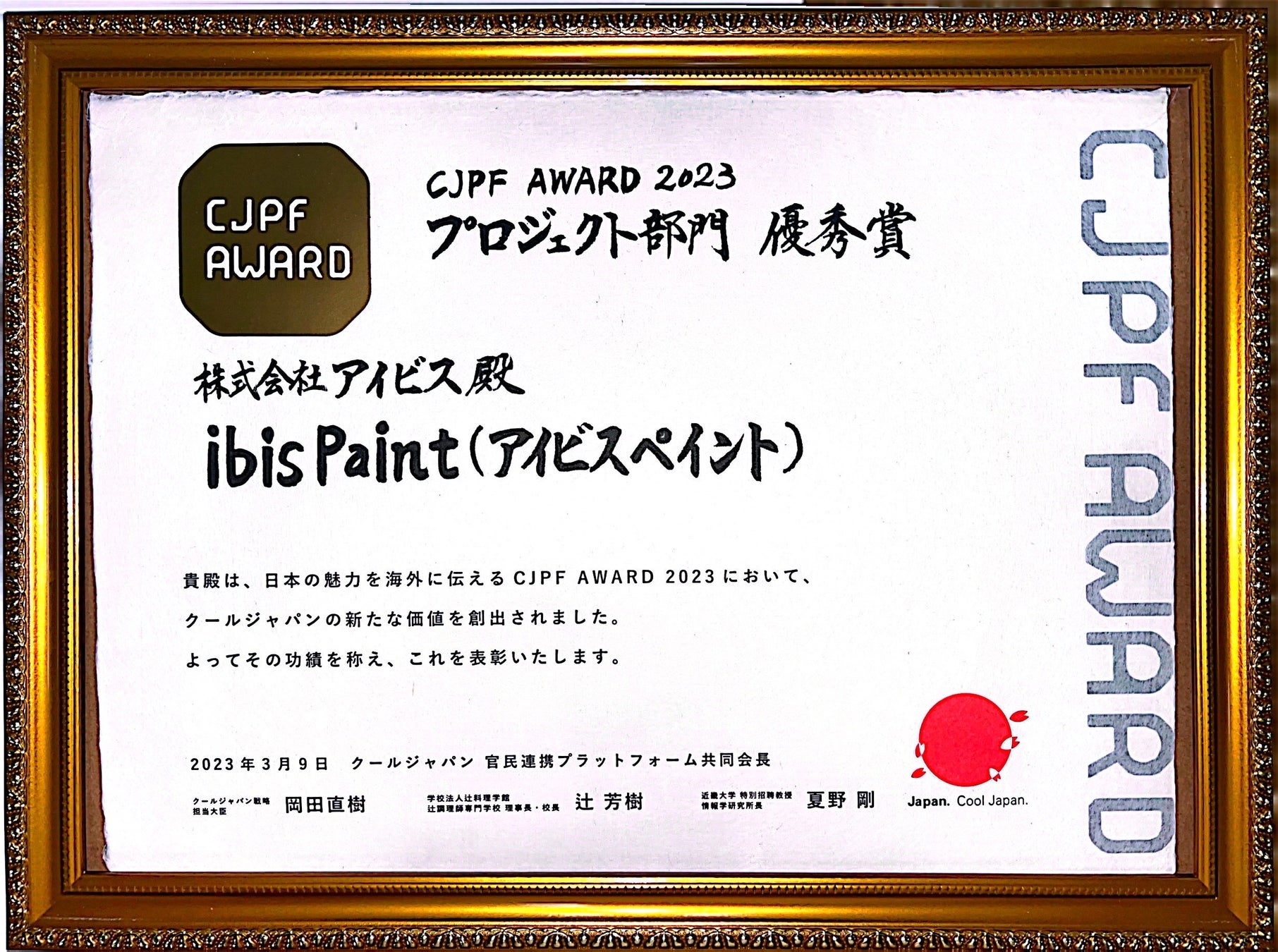 株式会社アイビス(本社:名古屋市中村区、代表取締役社長:神谷 栄治)が開発・運営するモバイルペイントアプリ「ibisPaint(アイビスペイント)」は、クールジャパン官民連携プラットフォーム(事務局:内閣府知的財産戦略推進事務局)が2023年3月9日(木)に発表した「クールジャパン・プラットフォームアワード 2023」の「プロジェクト(事業)部門」において優秀賞を受賞しましたことをお知らせいたします。