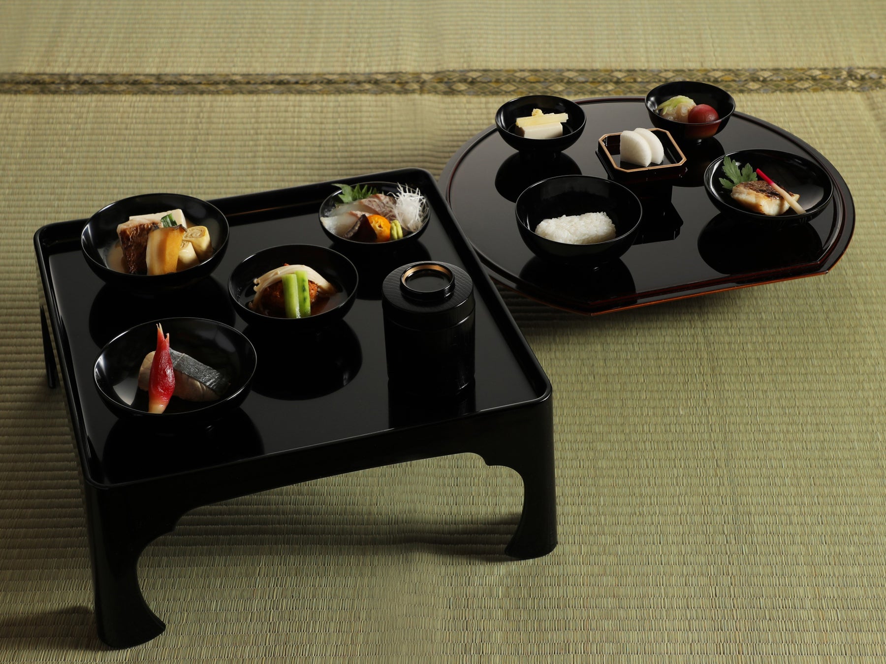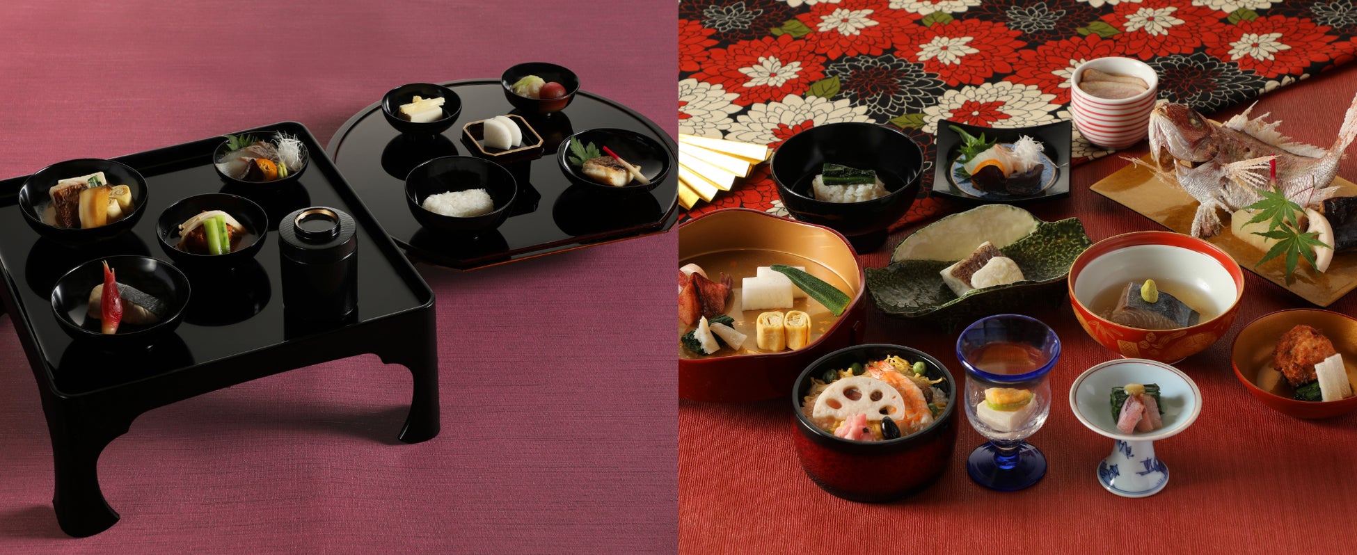 岡山藩の殿様たちの料理を再現した「廚洊ランチ〜岡山後楽園殿様御膳〜」と「錦会席〜岡山後楽園殿様の御馳走〜」は、文献資料「御後園諸事留帳」を基に、後楽園魅力向上委員会と(公財)岡山県郷土文化財団が発行したレシピ集「岡山後楽園殿様の御馳走帖」から、当ホテルの和食料理長が数点を厳選し調理いたしま した。料理を通して殿様の御好みや時代ごとの変化、その背景などを知っていただくことでより深く楽しん でいただけるメニューです。様々な料理が上品かつ豪華に並び、実際に殿様やその家族が楽しんだ料理の他、もてなしや祝儀として出した料理がバラエティ豊かに並びます。紡がれてきた歴史に思いを馳せながら、素材の味をどれだけ活かして美味しく食べられるかという当時の料理人の知恵が込められたお料理の数々をご堪能ください。