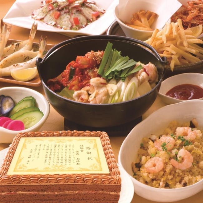 賞状ケーキ・写真ケーキ・お手紙ケーキのいずれかを含む全9品+2h飲み放題