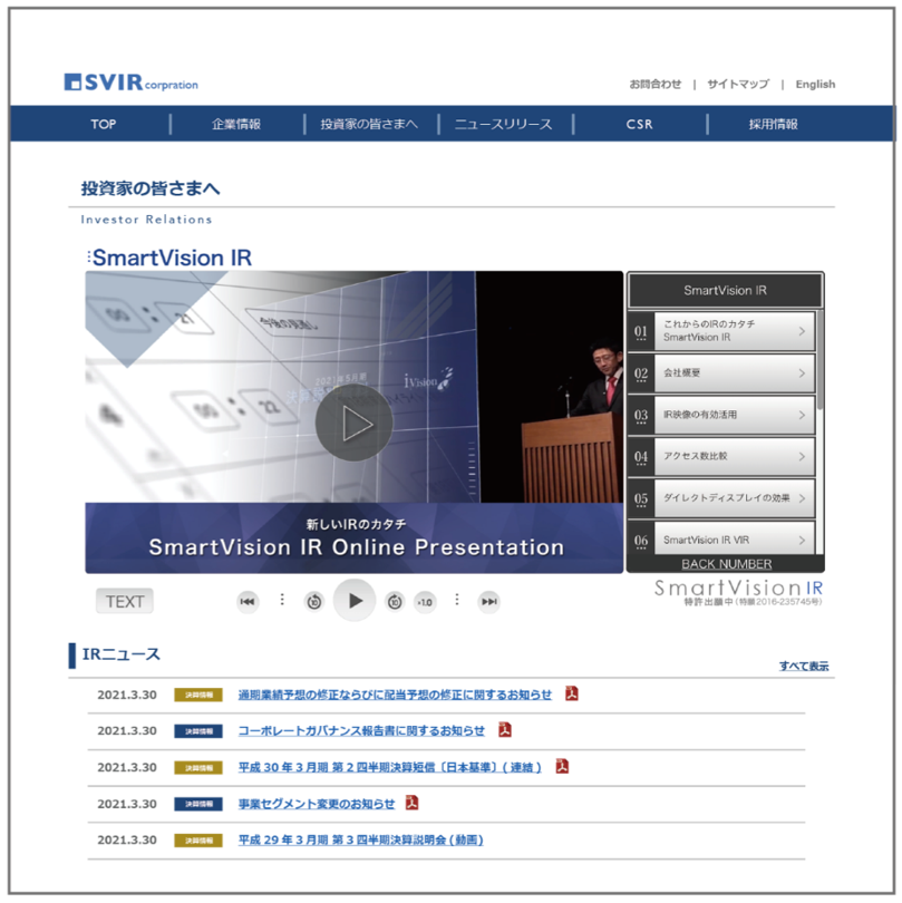 アイヴィジョン社のIR動画配信システム『SmartVision® IR』には、以下の特徴があります。