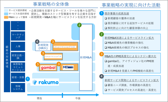 アイヴィジョン社は、サブスクリプション(定期定額契約)型での動画配信サービスを展開しており、上場企業を主な顧客としていることから、rakumoグループの提供するサービスとの間においても、一定程度の共通性や相互補完性があるものと考えております。